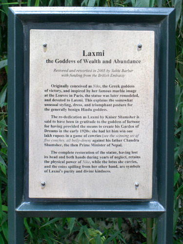 Restoration and remodelling of the life-size statue of the goddess Lakshmi. World Heritage Site "Garden of Dreams", Kathmandu, Nepal Commissioned by the Austrian NGO Eco Himal and funded by the British Embassy.