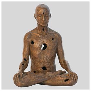 The quality of wisdom, which is our natural potential, is likened to light. It is the natural radiance of mind. Likewise, our negative emotions and habitual patterns of ignorance can be compared to a veil that keeps us in darkness. In the 'Disillusion Series' this heavy veil is represented by the body of the meditator, his idea of an independent self and all the limiting patterns and emotions that go along with that. As he meditates he gradually lets go of these limitations, so opening himself to the vast potential within, until eventually he is experiencing the purity of his true nature, boundless light and space, like the cloud-free sky.