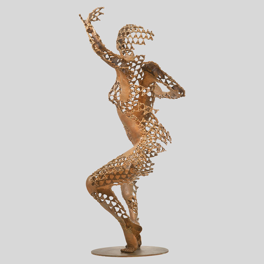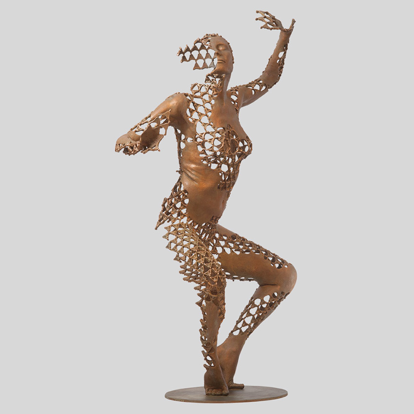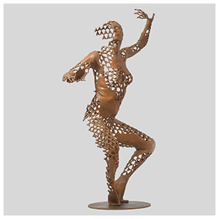 In the whirlwind of modern life, can we find stillness within activity, the peace in the centre of the storm? The sculpture 'Dynamic Equilibrium' holds the answer - a dancer, herself composed of tiny meditators, while wildly abandoned in ecstatic dance remains serenely centred in the heart.