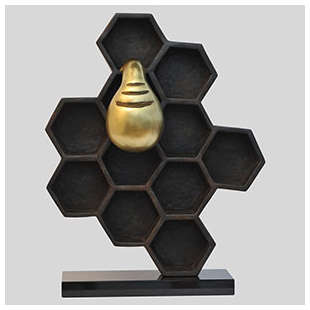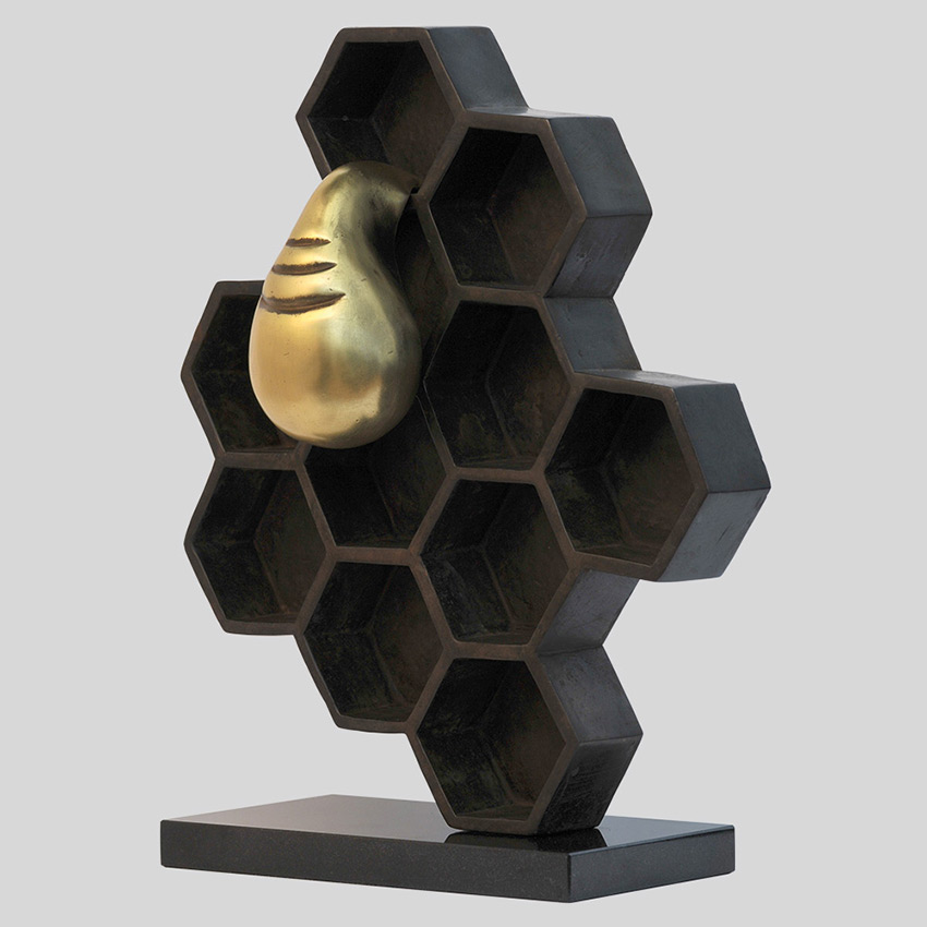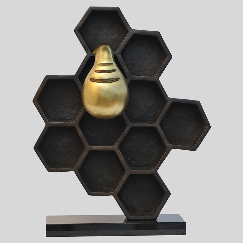 The 'Potential Series' of sculptures seeks to demonstrate how we all have the potential of great wisdom and compassion, even though these qualities are often shrouded by our negative emotions and ignorance. When we find a bees' nest, surrounded by angry bees, we detect little indication of the delicious honey within. In the same way, anger and bigotry form a veil that hides our true nature of peaceful clarity and love, and yet, when discovered, it is obvious that this nature was there all along.