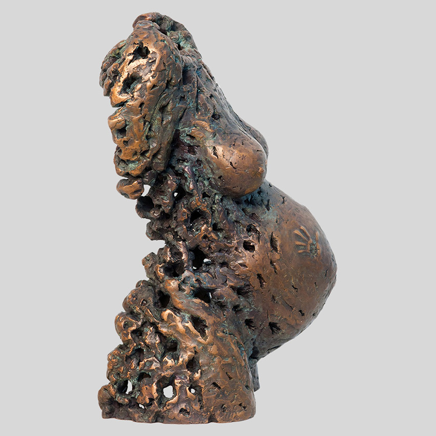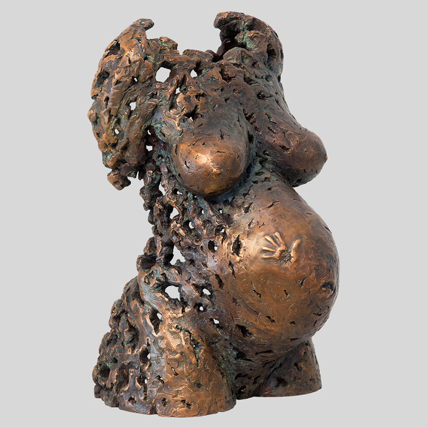 There is no more ancient or powerful symbol for enduring life as the pregnant female form. It embodies the endless cycle of nature, and at the same time, the mystery and hope of pure, unborn potential. In 'Potential 8', this symbol is intensified by the torso, and so all identity, dissolving away. On the curve of the belly we notice a small hand, pushing outwards. The palm of the hand is adorned with the symbol of an enlightened being – this child is destined for greatness - and yet may now lie in the humble womb of a beggar woman.