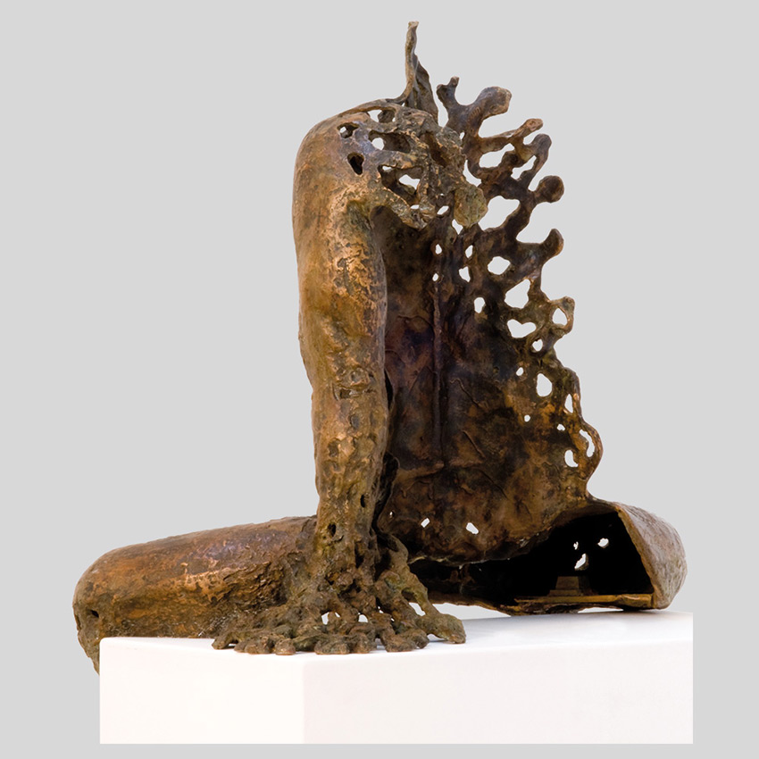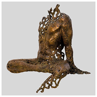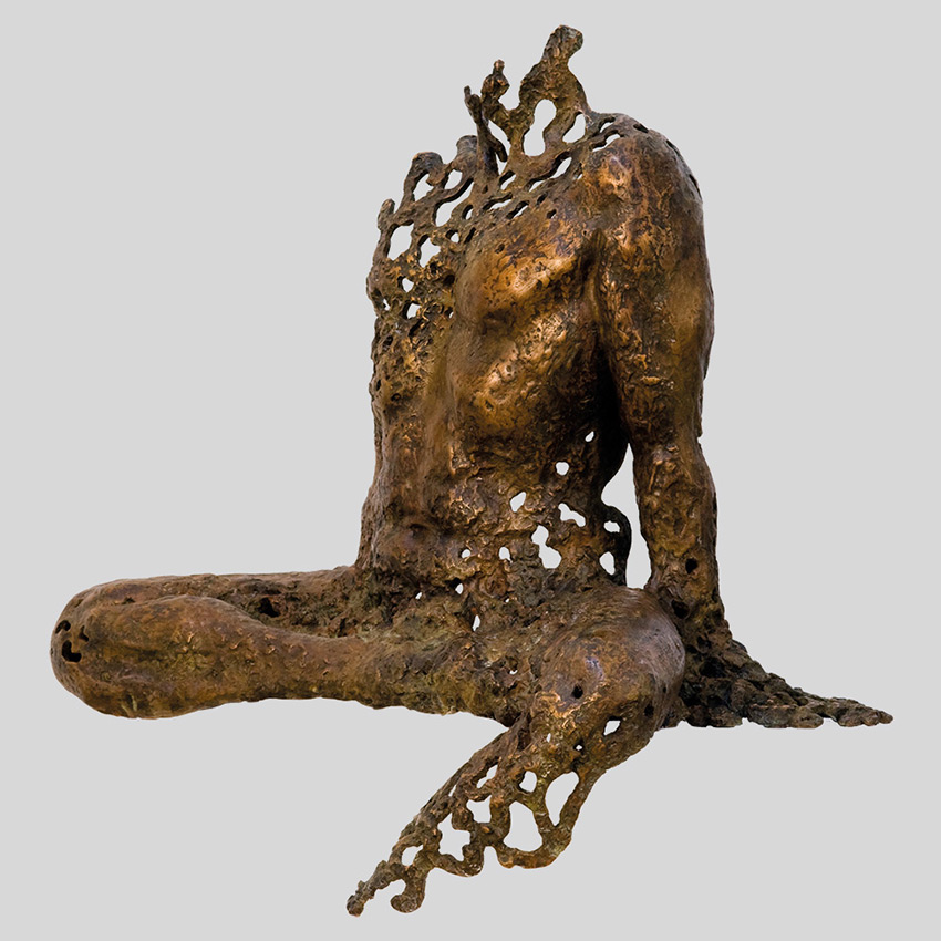 What is the essence of being present when all personal identity is refined away? The ancient sculptures of Asia, even while being severely damaged, often retain a strong charismatic presence of peace and balance. 'Presence' seeks to explore these boundaries. Even in the process of dissolving, the figure is utterly present, poised and relaxed. Beyond individual identity it symbolizes the eternal power of effortless being.