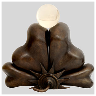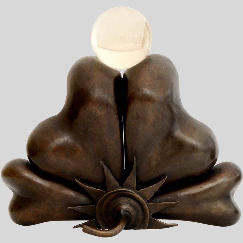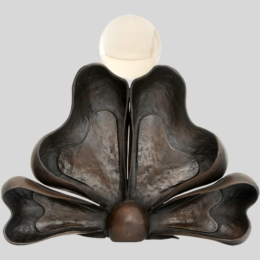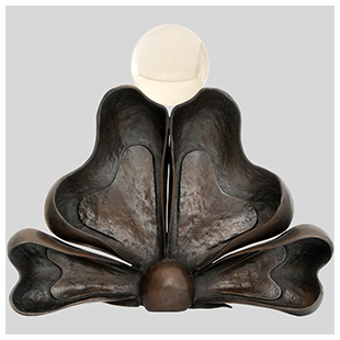 The lotus is a symbol of purity. It grows in the mud and yet is unstained by it. In the same way we can live in the world, surrounded by negativity and strong emotions and if we are resting in the pure nature of our minds, we will not be degenerated by it. In 'Settled Clarity' the lotus petals represent the billowing robes of the meditator, while the crystal dewdrop represents this pure clarity of mind, the adornment that is the result of his practice.